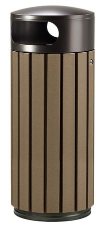 Diese ansprechenden Outdoor-Abfallbehälter verleihen Nahrungsmittelverpackungen ein attraktives und sinnvolles zweites Leben. Mit einem Korpus wahlweise aus grauen oder braunen Latten aus Recycling-Kunststoff sind sie eine pflegeleichte wie ästhetische Alternative zu Behältern mit einem Korpus aus Holz – für Außenbereiche im städtischen Bereich, in Grünanlagen, auf dem Bildungscampus oder auf dem Unternehmensgelände. Die Stahl-Abdeckung mit zwei Einwurföffnungen kann wahlweise in Mangangrau, Rapsgelb RAL 1021 oder Ultramarinblau RAL 5002 bestellt werden, wodurch die Behälter sich auch als Outdoor-Wertstoffsammler oder Abfalltrennsystem eignen. Für eine unkomplizierte und schnelle Leerung verfügen die Behälter über einen praktischen Innenbehälter aus verzinktem Stahl, der durch einfaches Aufklappen der Abdeckung entnommen wird. Die Abdeckung wird mit einem Dreikantschloss verriegelt und gesichert. Der Abfallbehälter selbst eignet sich zum freien Aufstellen sowie zur Befestigung am Untergrund.