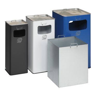 Dieser Abfallbehälter mit Aschereinsatz ist gedacht zum freien Aufstellen ohne Bodenbefestigung.
