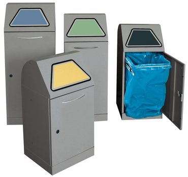 Vollständig aus verzinktem Qualitätsfeinblech gefertigt und hochwertig strukturiert pulverbeschichtet. Oberfläche unempfindlich, langlebig, schlag- und kratzfest. Einwurföffnungen im ergonomischen Winkel von 40°. Im Behälterinnern sorgt eine auf Teleskopschienen ausziehbare Aufnahmevorrichtung für den schnellen und bequemen Austausch von Abfalltüten (ProSlide-System). Dabei sorg ein Elast-Spannband für die Fixierung der Tüte. Zur farblichen Kennzeichnung der Einwurfklappen liegen den Sammlern je ein Set mit ProPads (= protect-pads, hochrobust, selbstklebend) in den Farben blau, gelb, grün und anthrazit bei. So entscheidet der Anwender selbst, welche Kennzeichnungsfarbe die Sammler tragen sollen. Als Zubehör sind die ProPads außerdem in rot, braun und lichtgrau erhältlich. Die Abfalltüte wird durch eine frontseitig eingelassene und per Vierkantverschloss verschließbare Flügeltür entnommen (Vierkantschlüssel wird mitgeliefert). Die Einwurfklappen schließen gedämpft und selbsttätig und wirken daher feuer- und geruchshemmend. Zum Ausgleich von Bodenunebenheiten sind jeweils die beiden vorderen Füße verstellbar (Niveauregulierung).