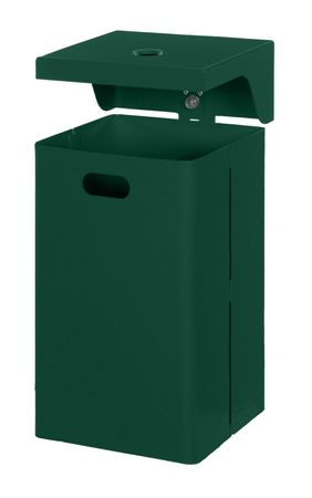 - solider Rechteck-Abfallbehälter mit Abdeckhaube, integriertem Klapp-Ascher und Befestigungsschiene