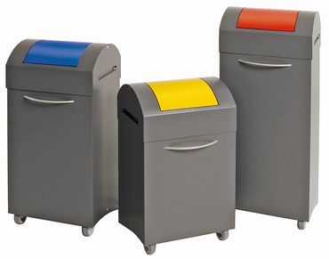 - Selbstschließende Pendeldeckel: signalgelb, lichtgrau, enzianblau, feuerrot, verkehrsgrün