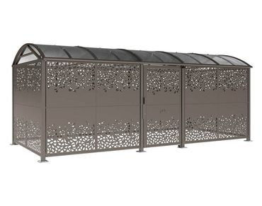 - Abschließbare Fahrradüberdachung mit Bogendach und Verkleidungen aus lasergeschnittenem Stahlblech