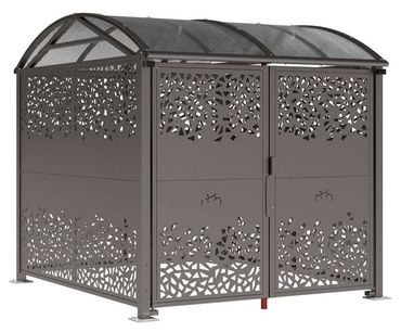 - Fahrradüberdachung abschließbar mit Seitenteilen aus lasergeschnittenem Stahlblech und Bogendach