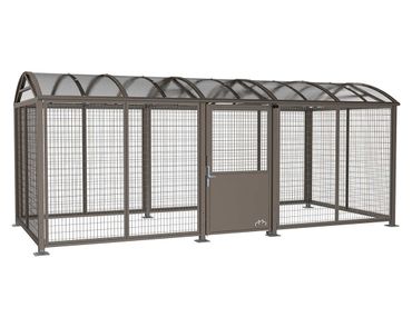 - Abschließbare Fahrradüberdachung mit Bogendach und Stahlgitter-Verkleidungen