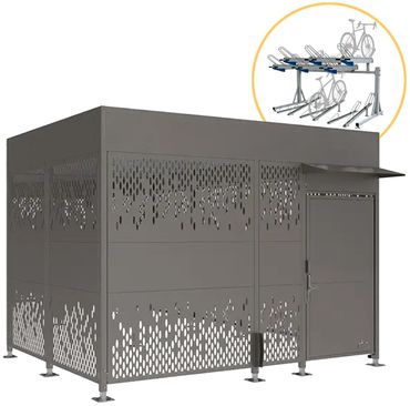 Diese abschließbare Fahrradüberdachung mit Stahlverkleidungen kann durch das modulare System von Grundeinheit und Anbaueinheit beliebig erweitert werden. Durch ihre besonders hohe Bauweise ist sie zudem kompatibel mit dem Doppelstockparker derselben Serie, wodurch zusätzlich die optimierte Nutzung der Unterstellfläche ermöglicht wird. Sie eignet sich ideal als Fahrradgarage für größere Wohneinheiten, das Betriebsgelände, den Klinik- oder Bildungscampus uvm. und als effektiver Schutz vor Diebstahl, Vandalismus und Witterung.