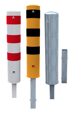 Dieser herausnehmbare Stahlrohrpoller Ø 193 mm mit einer Gesamthöhe von 1500 mm wird mit einer feuerverzinkten Bodenhülse (ca. 500 mm Unterflur) und einem Dreikantverschluss nach DIN 3223 mit selbsteinrastender Verriegelung geliefert. Je nach Einsatzbereich stehen zwei Ausführungen zur Auswahl: neutral feuerverzinkt und unbeschichtet oder feuerverzinkt und pulverbeschichtet in Gelb mit drei schwarzen Warnstreifen speziell für den Werkschutz als Absperrung und Sicherung für Produktionsbereiche, Lager und Logistik.