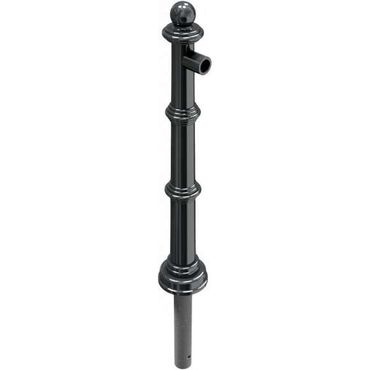 Dieser dekorative Absperrpfosten kann als ein Teil von Stil-Schutzgeländer eingesetzt werden. Er besteht aus Aluminiumguss mit Stahlrohrkern, die Gesamthöhe beträgt 1400 mm, wobei Höhe Überflur 900 mm beträgt. Der Absperrpfosten ist anthrazitgrau (Eisenglimmer) beschichtet.