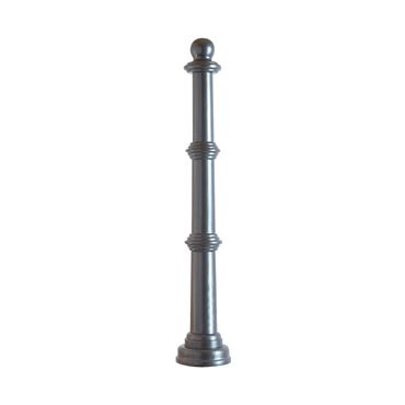 Dieser dekorative Absperrpfosten kann als Begrenzungspfosten von Fußgängerbereichen, Einfahrten, Fahrbahnen, Plätzen usw. eingesetzt werden. Er besteht aus Aluminiumguss mit Stahlrohrkern, wahlweise mit oder ohne Kettenösen. Die Gesamthöhe beträgt 1.400 mm, wobei Höhe über Flur 900 mm beträgt. Der Absperrpfosten ist anthrazitgrau (Eisenglimmer) beschichtet.
