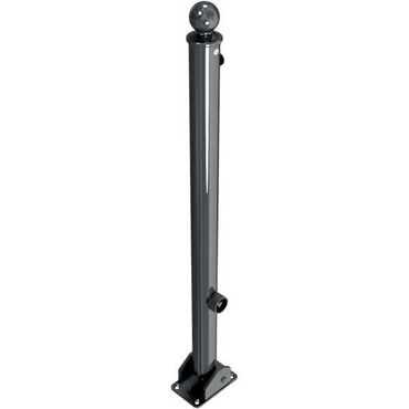 Dieser leichte, umlegbare Absperrpfosten kann als Begrenzungspfosten von Fußgängerbereichen, Einfahrten, Fahrbahnen, Sicherheitszonen usw. eingesetzt werden. Er besteht aus einem feuerverzinkten Stahlrohr mit einem Durchmesser vom 60 mm und einem Kugelkopf. Der stabile Verschluss und die leichte Handhabung gewähren eine schnell zu öffnende Absperrung. Die Gesamthöhe über Flur liegt bei ca. 950 mm. Der Absperrpfosten ist feuerverzinkt und anthrazitgrau (RAL 7016) beschichtet.