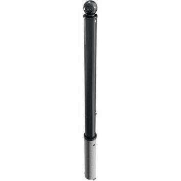 Dieser leichte herausnehmbare Absperrpfosten kann als Begrenzungspfosten von Fußgängerbereichen, Einfahrten, Fahrbahnen, Sicherheitszonen usw. eingesetzt werden. Er besteht aus einem feuerverzinkten Stahlrohr mit einem Durchmesser vom 76 mm und einem Kugelkopf. Der stabile Verschluss und die leichte Handhabung gewähren eine schnell zu öffnende Absperrung. Die Gesamthöhe über Flur liegt bei ca. 950 mm. Der Absperrpfosten ist feuerverzinkt und anthrazitgrau (RAL 7016) beschichtet.