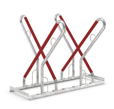 Ein hochwertiger Anlehnparker für den Einsatz im Freien ist aus robustem Rundrohr-Stahl gefertigt und bietet eine ausgezeichnete Korrosionsbeständigkeit durch Verzinkung, wodurch er dauerhaft und wertbeständig ist. Dieser Anlehnparker verfügt über praktische Anlehnbügel und einen Anschlagschutz, der mit einer Kunststoff-Ummantelung in auffälligem Signalrot versehen ist, um hochwertige Fahrräder effektiv vor Umkippen oder vorsätzlicher Beschädigung zu schützen.