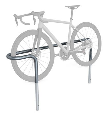 Eine komfortable Abstellmöglichkeit für Fahrräder bietet dieser Anlehnparker in Schlingenform, bei dem das Vorderrad vorne zwischen die großzügige Schlinge aus Stahlrohr ca. Ø 42 mm gestellt und das Fahrrad dann ggf. an den Bügel angelehnt wird.