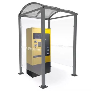 - Automatenüberdachung mit Rundbogendach und Verkleidungen aus Glas