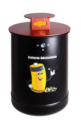 - runder Sammelbehälter zur Rücknahme von Altbatterien