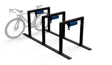 Eine Ladestation für E-Bikes integriert in eine Fahrradanlehnbügel-Reihenanlage mit drei Anlehnbügeln – erhältlich in zwei praktischen Ausführungen für jeden Aufstellungsort. Bei Aufstellung in öffentlichen Räumen beispielsweise in Innenstädten oder auf einem Unternehmensgelände ist die Ausführung mit abschließbaren Ladeboxen eine optimale Wahl, um das Ladegerät beim Laden vor Diebstahl zu sichern. Eine Ladebox wird dabei mit Hilfe eines selbst mitgebrachten Rahmenschlosses (Fahrradschlosses) durch eine Öffnung im Riegel, mit dem man die Box schließt, eingeschlossen.