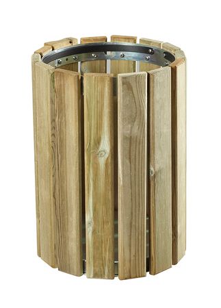 Die verwendeten Nadelhölzer stammen aus nachhaltigem Anbau. Imprägniert sind sie nach dem Klasse-IV-Verfahren der Europäischen Union, was den Einsatz von giftigem Arsen völlig ausschließt. Darüber hinaus erfolgt die Druckimprägnierung bis tief ins Kernholz, sodass der Abfallbehälter dauerhaft gegen Fäule und Schädlinge geschützt ist. Das Rahmengestell mit einer robusten Wandhalterung ist nach Stand der Technik pulverbeschichtet und kann in verschiedenen perfekt abgestimmten RAL-Farbtönen geordert werden.