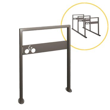 Der Fahrradbügel MALABO mit dekorativem Schild als Querholm überzeugt nicht nur durch sein geradliniges und modernes Design. Fahrradschlösser können hier auf angenehmer Höhe befestigt werden. Auch als Kennzeichnung von Fahrradabstellflächen macht dieser Fahrradbügel eine gute Figur und lässt sich auch mit dem einfachen Fahrradbügel MALABO ohne Schild zu beliebig großen Reihenanlagen kombinieren.