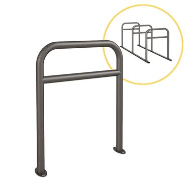 Bei diesem schlichten Fahrradbügel der Serie PELM mit Querholm bleiben Fahrradschlösser angenehm zugänglich auf Griffhöhe. Gefertigt aus feuerverzinktem Stahlrohr mit Ø 50 mm eignet sich dieser witterungsbeständige Fahrradbügel vielseitig für Fahrradparkplätze im Außenraum sowie als Ausstattung für Fahrradüberdachungen. Er ist in Ausführungen zum Einbetonieren sowie in Varianten mit Bodenplatten zum Aufdübeln erhältlich und sowohl unbeschichtet als auch farbig beschichtet in einer der attraktiven 10 Standardfarben erhältlich. Ein besonderes Highlight bieten die Ausführungen mit Bodenplatten, die mit einer passenden Schiene als Fahrradanlehnsystem montiert werden können.