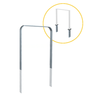 Die Abbildungen zu diesem Produkt sind beispielhaft. Die Abbildungen mit Bodenplatten stellen den Bügel ohne Querholm jeweils nur Ausführungen in feuerverzinkt ohne Pulverbeschichtung dar.