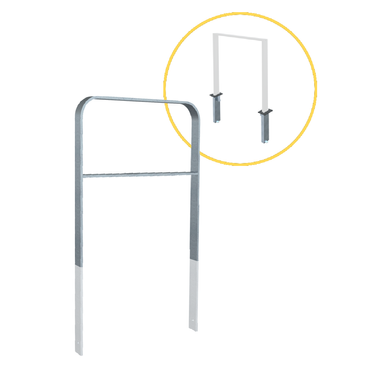 Die Abbildungen zu diesem Produkt sind beispielhaft. Die Abbildungen mit Bodenplatten stellen den Bügel ohne Querholm jeweils nur Ausführungen in feuerverzinkt ohne Pulverbeschichtung dar.
