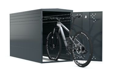 Die Fahrradgarage VILM in der Ausführung mit Spitzdach bietet effektiven Schutz vor Wind und Regen sowie vor Diebstahl und Vandalismus. Die Einstellschiene, die das Einparken des Fahrrads erleichtert, kann Fahrräder mit einer Reifenbreite bis 70 mm aufnehmen. In dieser Garage, die in modularer Bauweise aus robustem, korrosionsgeschütztem Stahlblech gefertigt ist und in Anthrazitgrau RAL 7016 oder anderen RAL-Classic-Farben pulverbeschichtet werden kann, finden Fahrräder vieler Größen und Bauarten mit und ohne Gepäck sicher und bequem Platz. Die Fahrradgarage VILM eignet sich ideal für Schulen, Sportstätten, Behörden, Firmen, Campingplätze, Wohnanlagen, Privathaushalte oder Bike & Ride-Stationen – überall dort, wo hochwertige Fahrräder, Pedelecs und E-Bikes sicher über Nacht oder für längere Zeiträume abgestellt werden müssen. Vor unbefugtem Zugriff schützt ein Einhebelgriff-Zylinderschloss oder Münzpfandschloss. Die modulare Bauweise ermöglicht den Austausch einzelner Teile und erlaubt die Erweiterung zu Reihenanlagen beliebiger Größe.