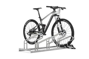 Stabile, formschöne Simplizität. Korrosionsgeschützte Stahlkonstruktion mit robusten Rundrohr-Bügeln und drei bis zehn Stellplätzen, platzsparend höhenversetzt. Keine Montage erforderlich. In diesem Bügelparker ALFIA parken Fahrräder und Pedelecs im komfortablen Radabstand von 350 mm, höhenversetzt oder auf Wunsch auch zweiseitig, um wertvollen Platz zu sparen. Im Handumdrehen lassen sich mit diesem Modell große und größte Fahrradparkanlagen vor Schulen, Hörsälen, an Stadien, Bahnhöfen etc. einrichten. Bodenanker und Bodenmontage-Winkel sind optional erhältlich.