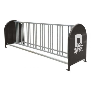 Ein schlichter und praktischer Fahrradständer für 16 Fahrräder. Jeweils 8 Fahrräder können in gegenüberstehender Anordnung abgestellt werden.