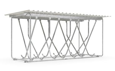 Diese Fahrradüberdachung der Serie NEXUS vereint zwei praktische Fahrradparksysteme in einem. Sie ist mit doppelseitig angeordneten Schräghochparkern ausgestattet mit einem Fassungsvermögen von 14 Fahrrädern – je 7 Fahrräder pro Seite in abwechselnder Tief- und Hocheinstellung. Die Fahrräder werden in dieser Ausführung über beide Frontseiten eingestellt. Mit einem komfortablem Radabstand von 500 mm parken hier Fahrräder mit einer Reifenbreite von bis zu 60 mm. Die Fahrräder können mit Fahrradschlössern an den Führungsschienen angeschlossen werden.