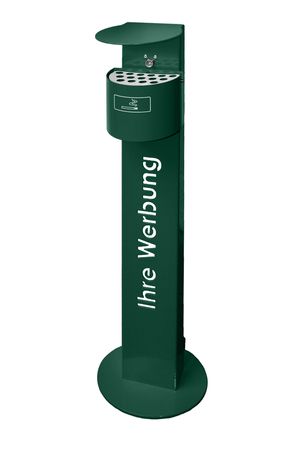 Der halbrunde Standascher ist dank seiner stabilen Bodenplatte zum freien Aufstellen geeignet. Die Abdeckhaube schützt vor Witterungseinflüssen. Der Behälter mit einem Fassungsvermögen von 2 l ist durch ein Dreikant-Kastenschloss gesichert und für die Entleerung abnehmbar. Gegen Aufpreis kann der Ständer mit Ihrer individuellen Werbeanzeige versehen (gelasert oder aufgeklebt) werden. Der Ascher ist durch ein Dreikantkastenschloss gesichert. Die Entleerung erfolgt unkompliziert durch den abnehmbaren Ascherbehälter.