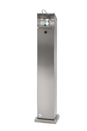 Den Handdesinfektionsspender kann man in zwei verschiedenen Ausführungen entweder als Edelstahl oder Pulverbeschichtet in der Farbe Weiss (RAL 9016) oder Antik-Silber bestellen.