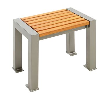 Klare Formensprache zeichnet diese Sitzgruppe aus. Das Gestell ist aus 60 x 60 mm Quadratrohr, farbig beschichtet. Die Sitz- und Tischfläche besteht aus 30 mm starken Robinienleisten. Die Holzlatten aus Hartholz sind allseits abgerundet und flächig eingelassen.