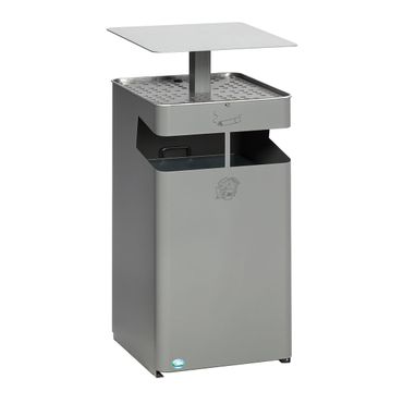 Ein funktionaler und schlichter Abfallbehälter mit integriertem Aschenbecher ist dieses Modell in eckiger Form mit einem Fassungsvermögen von ca. 72 Litern und praktischen Einwurföffnungen. Der Gitteraufsatz des Aschers ist mit dem Schutzdach fest verbunden und wird mit einem Doppelbartschloss verriegelt. Der Abfallbehälter verfügt über einen separaten Innenbehälter mit praktischen Bügelgriffen. Für noch mehr Standfestigkeit und als Schutz vor Diebstahl und Vandalismus wird der Behälter am Boden befestigt.