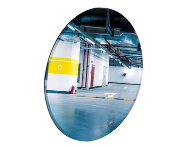 Eine einfache und kostengünstige Lösung zur Vermeidung von toten Winkeln beispielsweise in Tiefgaragen. Dieser Spiegel ermöglicht eine gute Sicht bis max. 2 Metern Abstand zwischen Fahrer und Spiegel.