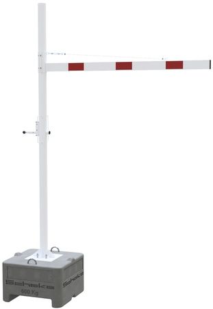 Dieser mobile Höhenbegrenzer mit solider und funktionaler Beton-Aufstellvorrichtung eignet sich ideal für den Einsatz bei temporären Zufahrtsbeschränkungen. Da keine Fundamentarbeiten notwendig sind, lässt sich der Höhenbegrenzer schnell und sicher aufstellen. Die erforderliche Standfestigkeit gewährleistet unsere Beton-Aufstellvorrichtung mit einem Gewicht von 600 kg. Er ist in mehreren verschiedenen Ausführungen erhältlich: mit 6 Querrohr-Längen von 2000 mm bis 4500 mm sowie mit drei unterschiedliche Verschluss-Systeme.