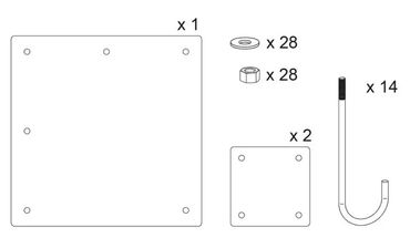 - Lieferumfang: Schablonenblech, U-Bügel, Muttern und Unterlegscheiben, Verankerungsklammern