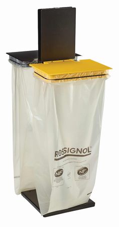 - Einzel-Set mit 1 Ständer und 2 Müllsackhalterungen – 1x Mangangrau (z.B. Restmüll) und 1x Rapsgelb RAL 1021 (z.B. Verpackungen)