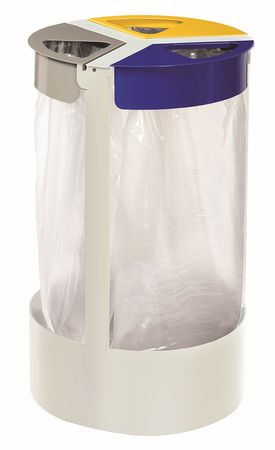 Dieser Müllsackständer mit drei farbigen Einwurföffnungen für die Abfalltrennung ist die passende Lösung für Innenbereiche wie Kantinen, Büroküchen oder öffentliche Einrichtungen. Gefertigt aus pulverbeschichtetem Stahl mit UV-Absorber in Weiß überzeugt die stabile Konstruktion durch ihre Alltagstauglichkeit. Die drei Standardfarben Grau, Gelb und Blau ermöglichen eine gut erkennbare und geordnete Trennung verschiedener Abfallarten wie Restmüll, Kunststoffverpackungen und Papier. Dank des elastischen Gummibands lässt sich der jeweilige Müllsack einfach und schnell befestigen und entnehmen oder austauschen. Verkleinerte Einwurföffnungen reduzieren bewusst den Einwurf großer Objekte. Der Müllsackständer kann freistehend aufgestellt sowie am Untergrund befestigt werden. Optional als Zubehör erhältlich ist auch ein praktischer Rollensatz für mehr Flexibilität und die Reduzierung von Barrieren.