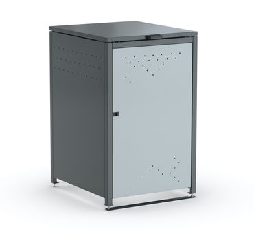Diese robuste Mülltonnenbox aus korrosionsgeschütztem Stahlblech schützt Müllbehälter stilsicher vor Wind und Wetter, Vandalismus und Tieren. Dank der modularen Bauweise eignet sich dieses System sowohl zur Aufstellung einzelner Boxen als auch zur Konfiguration beliebig langer Reihenanlagen. Es eignet sich somit für vielfältige Aufstellungorte wie Wohnanlagen, Schulen und Kindertagesstätten, Sportstätten, Behörden oder auch Campingplätze sowie Privathaushalte. Standardmäßig verfügt das Aufbewahrungsmodul über eine Abdeckung, die mit einer Kette am Deckel des Müllbehälters befestigt werden kann, sodass sich die Abdeckung und der Deckel des Mülleimers gleichzeitig öffnen. Optional und gegen Mehrpreis können hier zusätzlich zwei Gasdruckfedern integriert werden, die das Öffnen und Schließen der Abdeckung erleichtern und sie in der geöffneten Position halten.