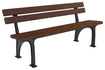 - Sitzfläche und Rückenlehne: 5 Latten (100 x 40 mm) aus braun gefärbtem Recycling-Kunststoff, im Inneren verstärkt durch Stahlarmierung