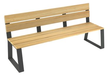 Diese Parkbank mit Rückenlehne ist Teil einer Serie schlichter Parkbänke und Stühle mit PEFC-zertifiziertem Robinienholz auf Stahlstruktur. Das Robinienholz vergraut im Verlauf der Zeit natürlich. Das Stahlgestell in dezentem Anthrazitgrau RAL 7016 steht auf trapezförmigen Füßen, die auf dem Untergrund aufgedübelt werden. Durch das schlichte Design passt diese Parkbank in öffentliche und halböffentliche Bereiche aller Art: vom Bildungscampus bis zur Grünanlage an Gemeinschaftseinrichtungen, Bürogebäude, Wohnanlagen oder Innenstädte und Parks.