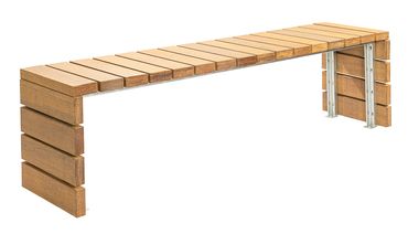Bei dieser Parkbank ohne Rückenlehne der Serie ULM sind die Planken der Sitzfläche und der Seitenelemente quer angeordnet und mit U-Profilen aus feuerverzinktem Stahl unauffällig verbunden. Diese warme und einladende Parkbank mit komfortabler Sitzhöhe ist in vier attraktiven Ausführungen erhältlich: aus Iroko- oder Robinienholz, jeweils FSC-zertifiziert, bzw. aus schnell nachwachsendem Bambus in heller oder dunklerer Farbgebung. Durch Befestigungsbohrungen in den U-Profilen kann die Bank sicher auf dem Untergrund aufgedübelt werden.