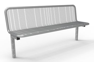 - Sitzfläche mit Rückenlehne durchgehend mit Drahtgitter und Rundrohr; Rohrdurchmesser 38 mm, Rohrwandungsstärke 2,5 mm, Drahtstärke 3,3 mm
