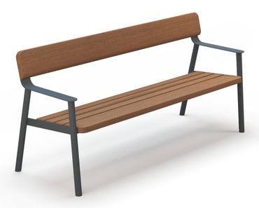 SLIMLINE ist eine Parkbank mit Rückenlehne und Armlehnen in schlankem Design. Ihre schlanke Silhouette und das moderne Design machen sie zu einer attraktiven Sitzgelegenheit für Parks, Grünanlagen und andere öffentlicher Plätze oder im Umfeld größerer Gebäude. Dank ihrer soliden Konstruktion und hochwertiger Materialien bietet SLIMLINE nicht nur ein ansprechendes Design, sondern auch Langlebigkeit und Komfort für alle, die eine Pause im Freien genießen möchten.