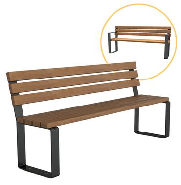 Diese Parkbank mit Rückenlehne aus Flachstahl & Holz bietet eine komfortable Sitzhöhe und passt dank ihres schlichten Designs vielseitig in jede Umgebung. Das Gestell aus feuerverzinktem, in DB 703 beschichtetem Flachstahl macht die Bank robust und witterungsbeständig. Sitz- und Rückenfläche bestehen aus FSC-zertifiziertem Kambalaholz und verleihen der Bank eine natürliche Ausstrahlung. Die Parkbank ist in zwei attraktiven Ausführungen erhältlich: schlicht und vielseitig ohne Armlehnen sowie als Parkbank mit Armlehnen, die auch als Unterstützung beim Aufstehen genutzt werden können.
