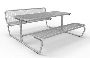 Dieser Picknicktisch der Serie RIES mit hochwertigem Drahtgitter ist eine ganz klassische Bank-Tisch-Kombination, die durch ihre hochwertige Verarbeitung und soliden Sitzkomfort überzeugt. An dieser Bank-Tisch-Kombination mit Rückenlehne einseitig bzw. mit Rückenlehnen an beiden Bänken nimmt man ganzjährig komfortabel Platz. Die hochwertige Spezial-Beschichtung des Drahtgitters der Sitzflächen sorgt für angenehme Sitztemperaturen sowie schnelles Abtrocknen nach einem Regenguss. Langlebig, pflegeleicht und wartungsarm – auch für anspruchsvolle Standorte ist dieser Picknicktisch eine ideale Wahl.