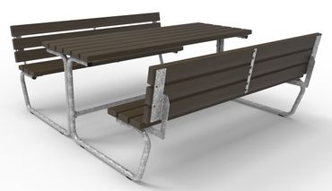 - Sitz- bzw. Tischfläche aus 100 x 40 mm Belattungen auf feuerverzinkten Adaptionsplatten