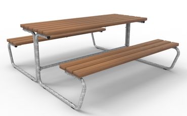 - Sitz- bzw. Tischfläche aus 100 x 40 mm Belattungen auf feuerverzinkten Adaptionsplatten
