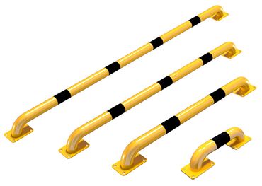 Dieser Rammschutzbügel aus robustem Stahlrohr Ø 60 mm mit einer niedrigen Höhe Überflur von 115 mm dient als Anfahrschutz für Verkehrswege, Maschinen oder Gebäudeteile. Der Rohrbügel zum Aufdübeln ist aus feuerverzinktem Stahl gefertig und zusätzlich Gelb beschichtet und mit schwarzen Warnstreifen versehen. Er ist in mehreren Breiten verfügbar.
