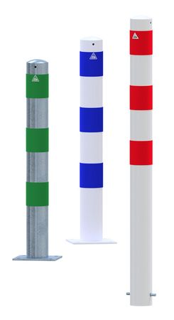 Dieser Rammschutzpfosten Ø 102 mm ist konzipiert für den Schutz von E-Ladesäule. Er ist wahlweise zum Einbetonieren oder zum Aufdübeln erhältlich sowie in mehreren Farbvarianten: feuerverzinkt und unbeschichtet oder zusätzlich pulverbeschichtet in Weiß lieferbar. Zur besseren Sichtbarkeit verfügen alle Ausführungen über drei reflektierende Streifen aus Folie mit Reflexionsklasse RA1/A, wahlweise in Blau, Rot oder Grün.