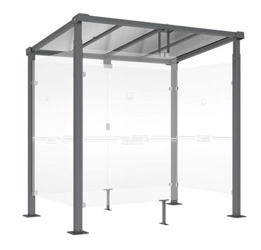 - Raucherunterstand mit Pultdach und Verkleidungen aus Glas